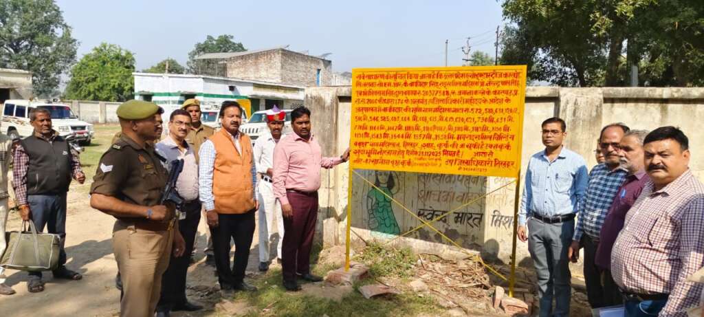 शाहजहांपुर। आज अरविन्द कुमार अपर जिलाधिकारी बिo/राo द्वारा जनपद के 10 बड़े बकायेदारों में से एक बाकीदार नरेंद्र सिंह पुत्र शिवराम सिंह, निवासी मझिला, खुदागंज तहसील तिलहर, जिस पर वर्ष 2014 से सी एम आर का लगभग 2 करोड़, 3 लाख 77 हजार 548 रूपये बकाया है, जिसके अलावा उक्त बकायदार पर बैंक देय का भी लगभग 2 करोड़ रुपए बकाया है की ग्राम मझिला स्थित राइस मिल, सिंह राइस मिल को सील कर गेट पर कुर्की बोर्ड लगवाया गया साथ ही मिल के मेन गेट, गोदाम, व अन्य संपत्तियों को ताला डाल कर सील किया गया तथा उक्त मिल की नीलामी हेतु दिनांक 28.11.2025 नियत को गई। उक्त बकायदार के नाम कुल 30 गाटों में कुल 1.703 हेक्टेयर भूमि थी, जिसको कुर्क किया गया है। इसके अलावा उक्त मिल के गेट से पूरे मझिला ग्राम में लाउड स्पीकर के माध्यम से नीलामी का अनाउंसमेंट करवाते हुए, ढोल के साथ डुगडुगी पिटवाई गई