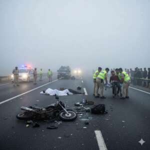 प्रत्यक्षदर्शियों के मुताबिक, कोहरा इतना गाढ़ा था कि कुछ ही कदम की दूरी पर भी दृश्यता नहीं थी। इसी दौरान बरेली की ओर से कटरा लौट रहे तीन युवक अचानक तेज रफ्तार अज्ञात वाहन की चपेट में आ गए। जोरदार टक्कर से बाइक चकनाचूर हो गई और टक्कर मारने वाला वाहन मौके से भाग निकला।हादसे में ग्राम भमौरी के मझरा गौटिया निवासी पप्पू मौर्य (32) और संजीत यादव (40) की मौके पर ही मौत हो गई। जबकि उनका साथी मोहित कुशवाहा गंभीर घायल है, जिसे प्राथमिक उपचार के बाद बरेली रेफर किया गया है।सूचना पर थाना प्रभारी निरीक्षक जुगल किशोर पाल पुलिस टीम के साथ पहुंचे और शवों को पोस्टमार्टम के लिए भेजा। पुलिस का कहना है कि परिजनों की तहरीर के आधार पर मामला दर्ज कर फरार वाहन की तलाश तेज की जाएगी।कोहरे के चलते एनएच पर हादसे लगातार बढ़ रहे हैं, लेकिन शुक्रवार सुबह का यह हादसा बेहद दर्दनाक रहा।
