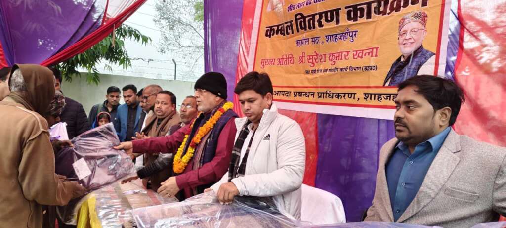 शाहजहाँपुर। जनपद में बढ़ती शीत लहर और कड़ाके की ठंड को देखते हुए प्रदेश के माननीय वित्त एवं संसदीय कार्य मंत्री सुरेश कुमार खन्ना की अध्यक्षता में आज तहसील सदर के अंतर्गत ग्राम बसुलिया और तिउलक में जरूरतमंदों को राहत पहुँचाने के उद्देश्य से कम्बल वितरण कार्यक्रम का आयोजन किया गया।
