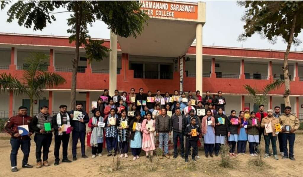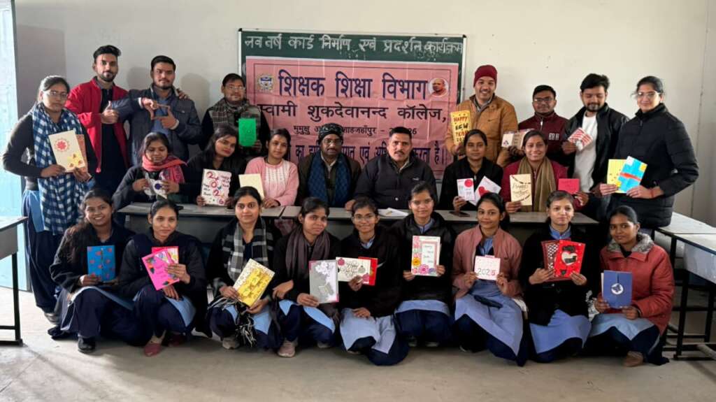 शाहजहांपुर। स्वामी शुकदेवानंद कॉलेज शाहजहांपुर के बी०एड० प्रशिक्षुओं ने इंटर्नशिप के दौरान आज दिनांक 29 दिसम्बर 2025 को निष्प्रयोज्य सामग्री से नव वर्ष कार्ड का निर्माण कर उसका प्रदर्शन किया । इस कार्यक्रम में प्रशिक्षुओं ने घर में रखे पुराने शादी के कार्ड एवं अन्य सामग्री का प्रयोग कर नव वर्ष कार्ड का निर्माण किया । इस कार्यक्रम का आयोजन स्वामी धर्मानंद सरस्वती इंटर कॉलेज के प्रांगण में किया गया । कार्यक्रम में इंटर कॉलेज के प्रधानाचार्य डॉ० अमीर सिंह ने कार्डों का अवलोकन कर प्रशिक्षुओं द्वारा किए गए कार्य की सराहना की एवं इसी रचनात्मकता को जीवन में बनाए रखने की कामना की । उन्होंने रचनात्मकता के जीवन में महत्व पर प्रकाश डाला तथा प्रशिक्षुओं द्वारा बनाए गए नववर्ष कार्ड में कार्ड की गुणवत्ता एवं रचनात्मकता के आधार पर प्रथम स्थान रूपाली त्रिपाठी, द्वितीय स्थान अनुशिका प्रजापति, अंशी यादव एवं सैयद फारूज़ अली तथा तृतीय स्थान अभिलाषा सागर, सोनाली शर्मा एवं रेखा देवी ने प्राप्त किया । इस कार्यक्रम का आयोजन शिक्षक शिक्षा विभाग के सहायक अध्यापक अमित गुप्ता के निर्देशन में किया गया, कार्यक्रम के अन्त में डॉक्टर बृज निवास ने सभी अतिथियों एवं प्रशिक्षुओं का धन्यवाद ज्ञापित किया ।